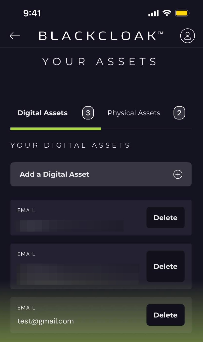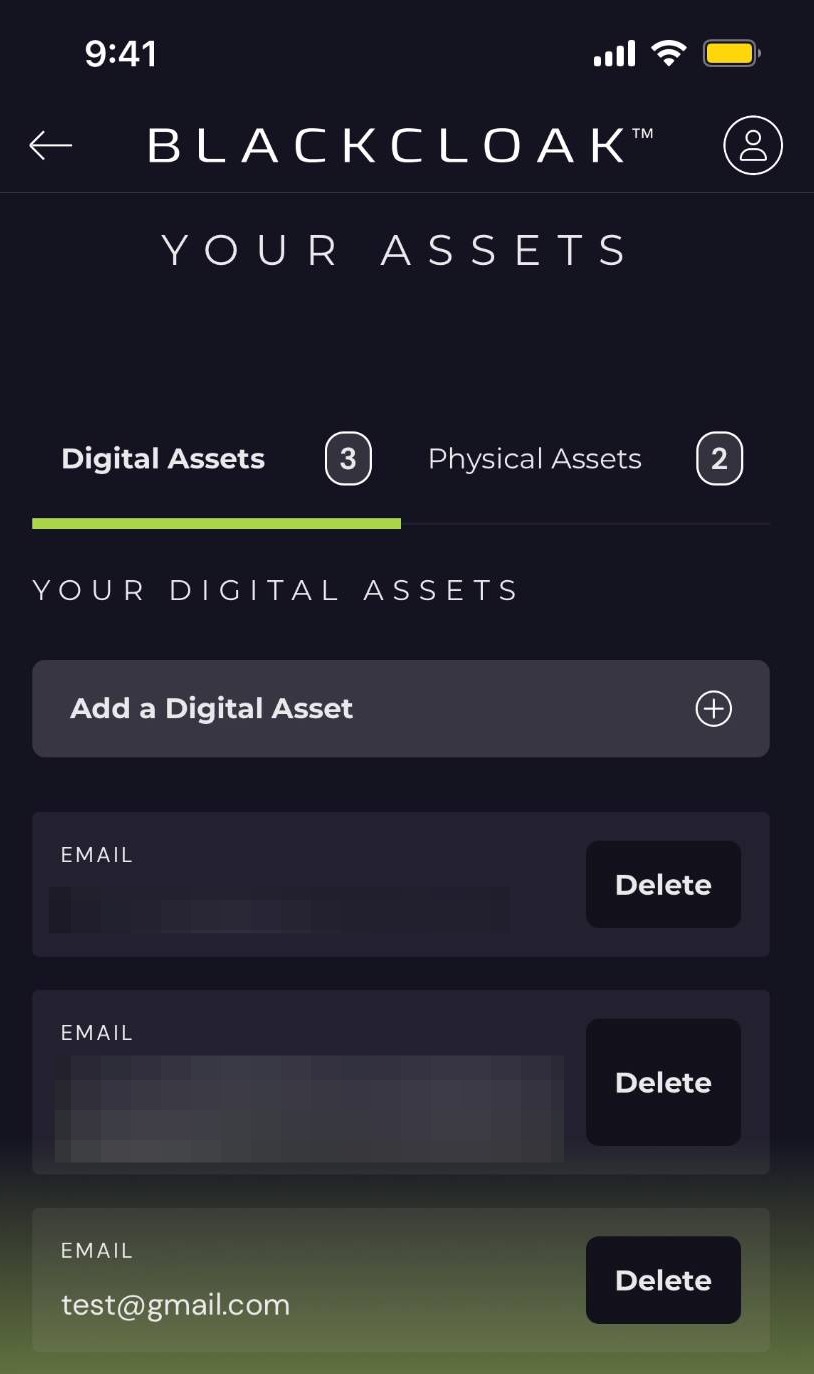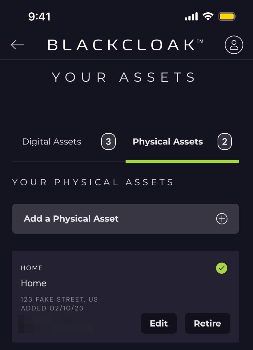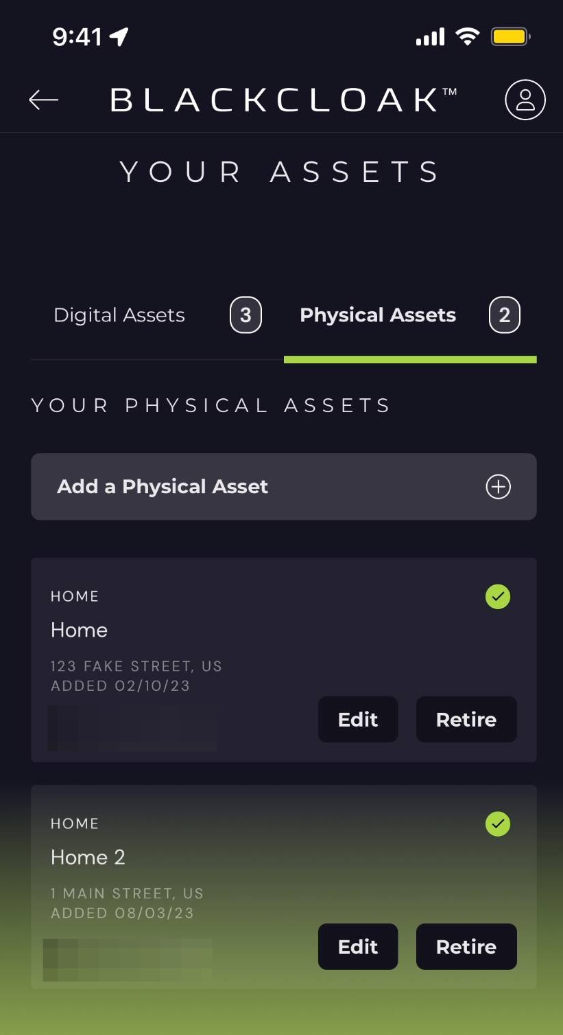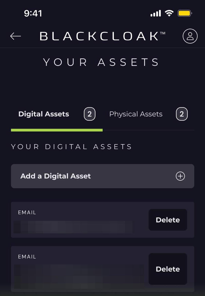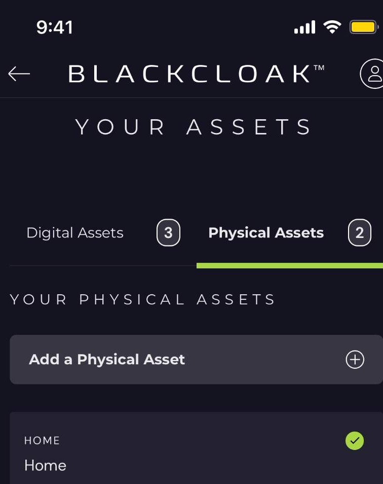 By adding digital and physical assets to the BlackCloak mobile app, you can manage your data at any time
