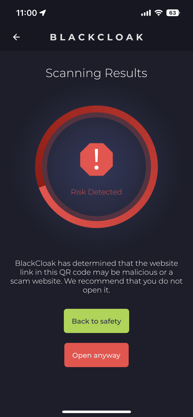 BlackCloak announces the rollout of our QR code scanner found within your mobile app.