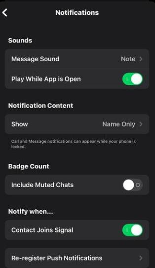 You should see this screen. Here, you can limit the content within a notification to show "Name, Contact, and Actions," "Name Only," or "No Name or Content"
