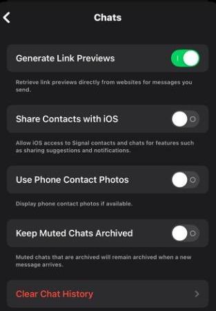 You should see this screen. Here, you can limit access to your device contacts and delete your chat history