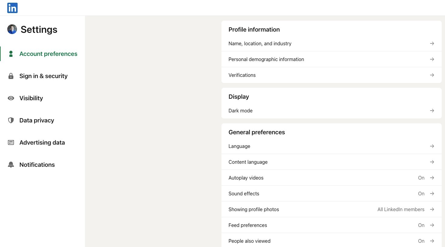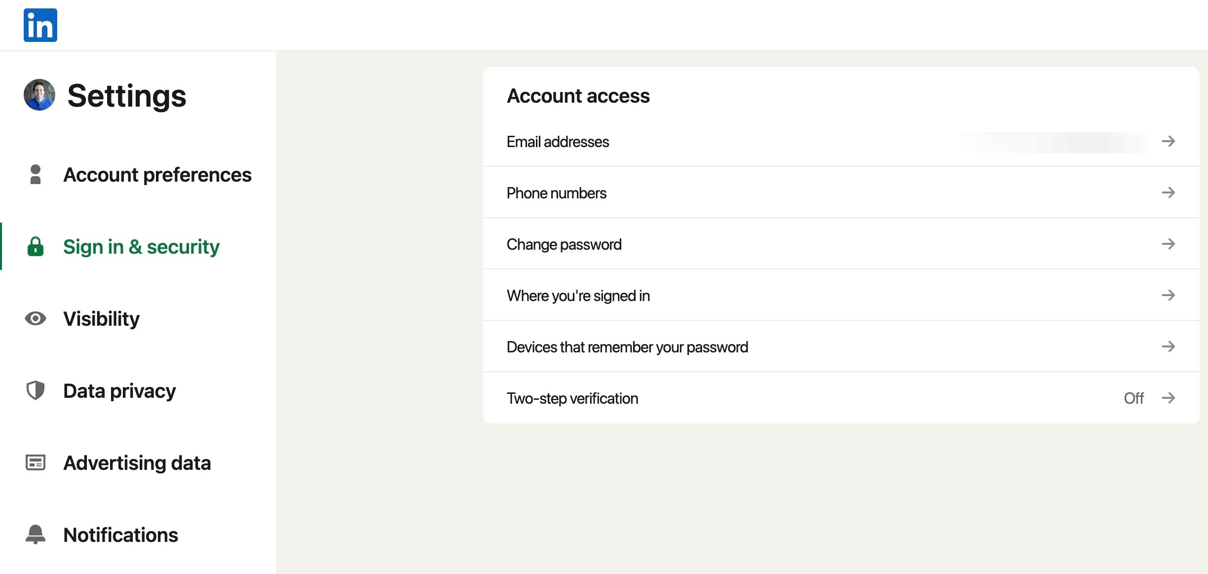 Navigate to [https://www.linkedin.com/mypreferences/d/categories/account](https://www.linkedin.com/mypreferences/d/categories/account)