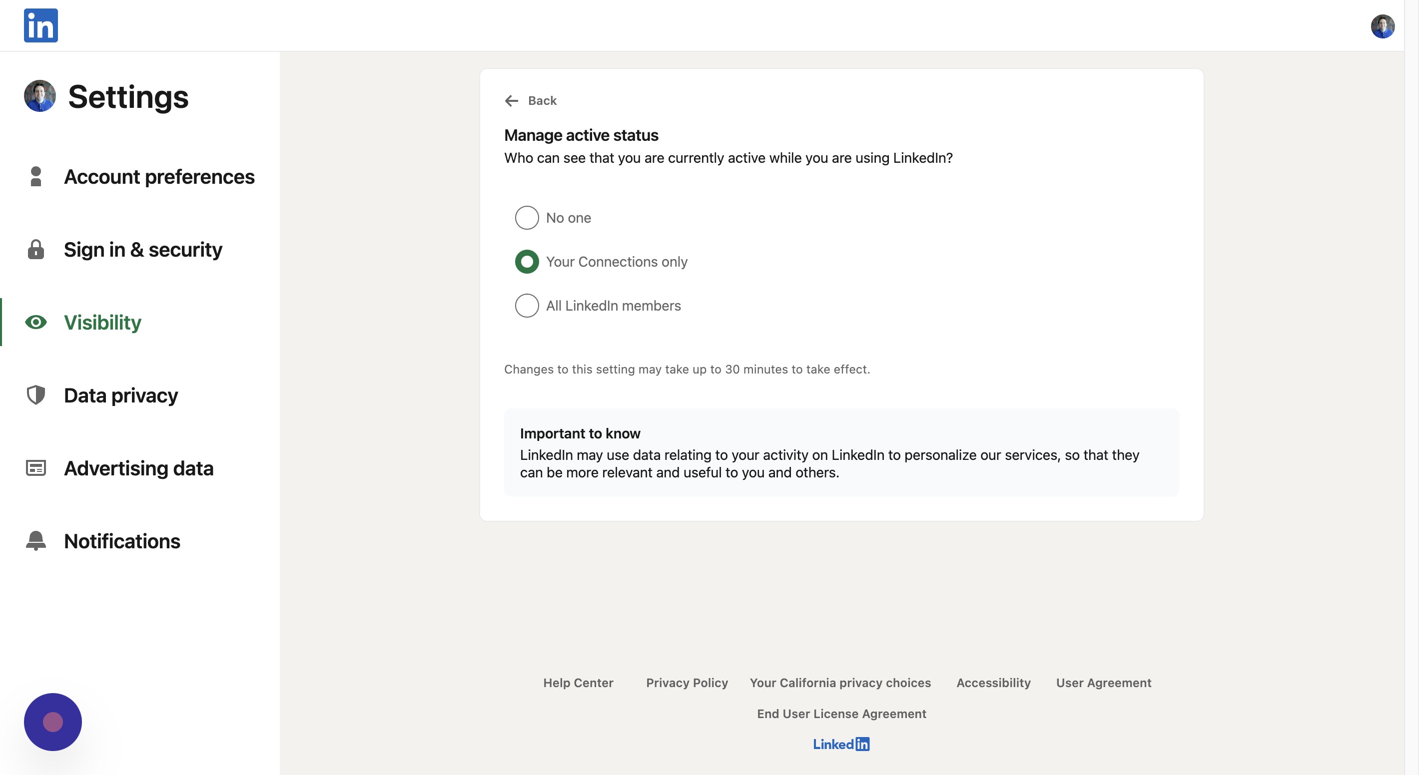 Here, you can choose who can see that you are currently active on LinkedIn