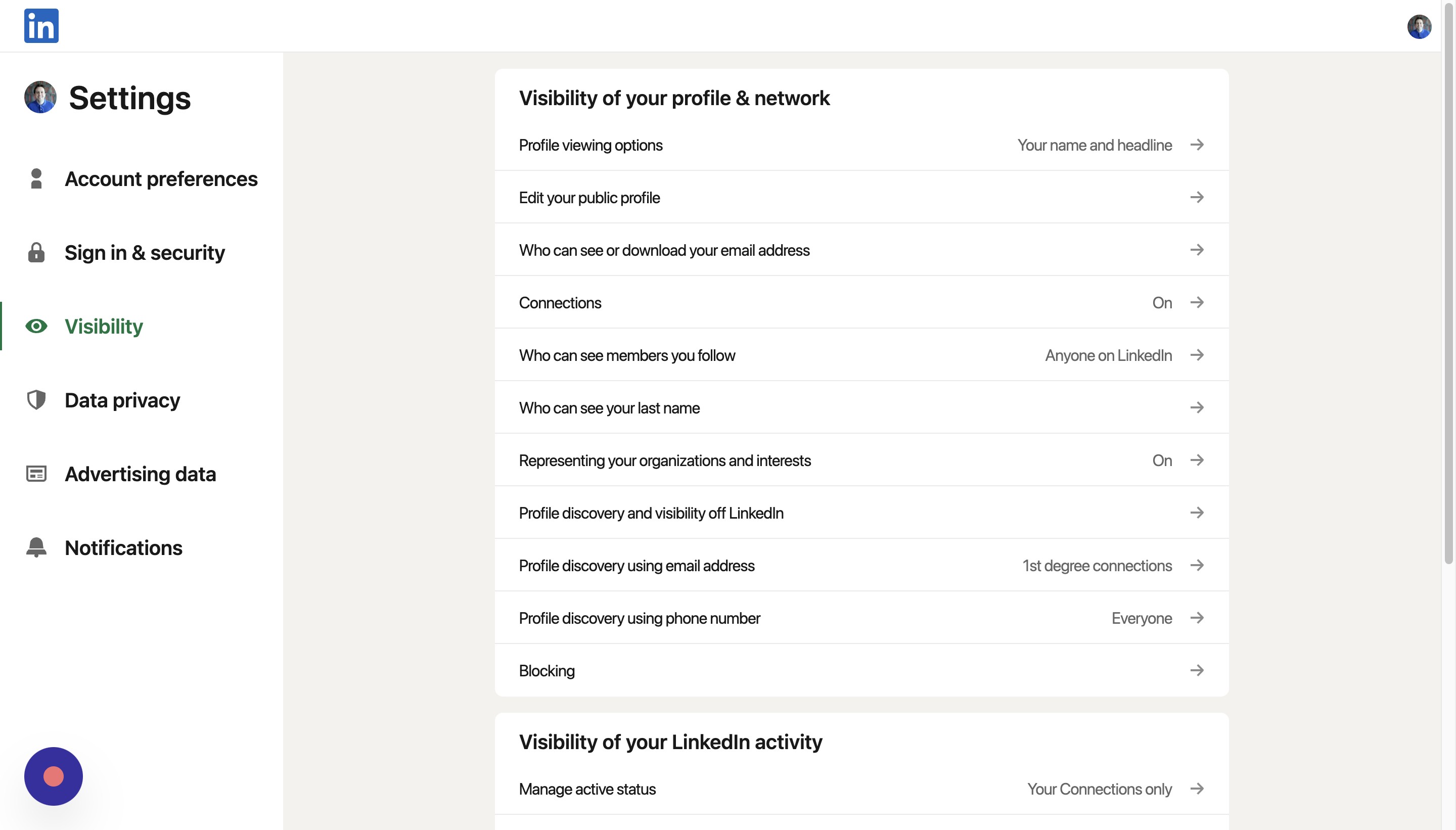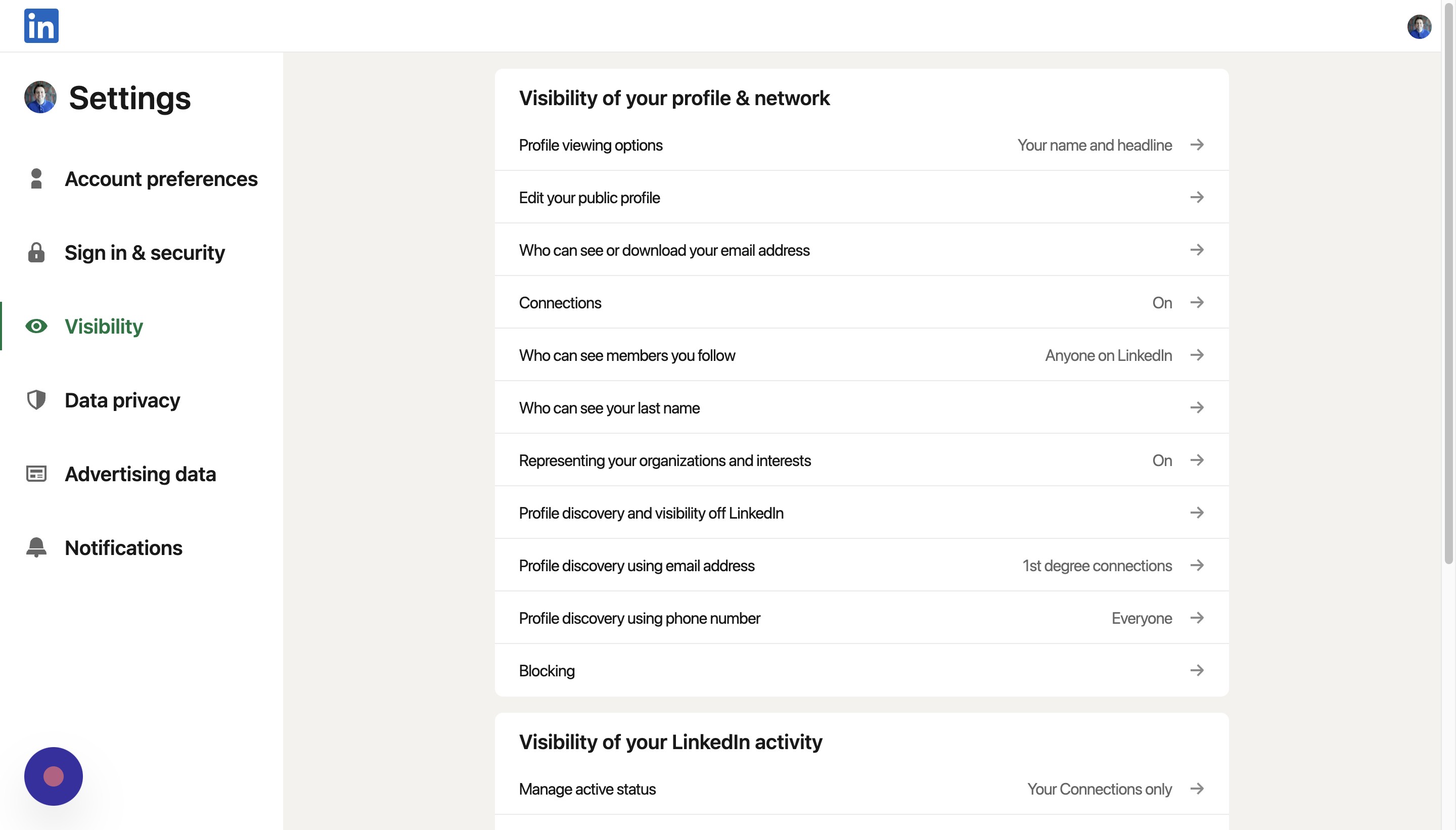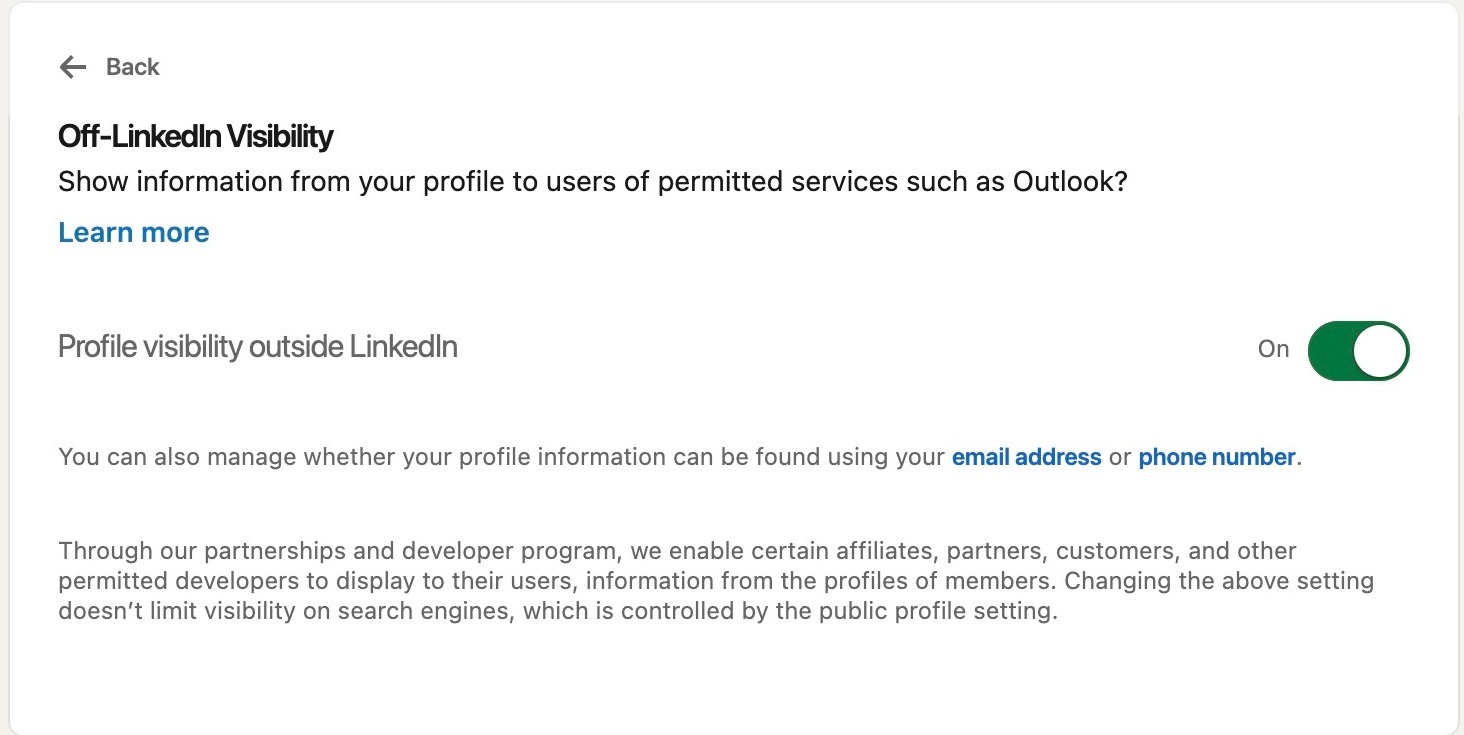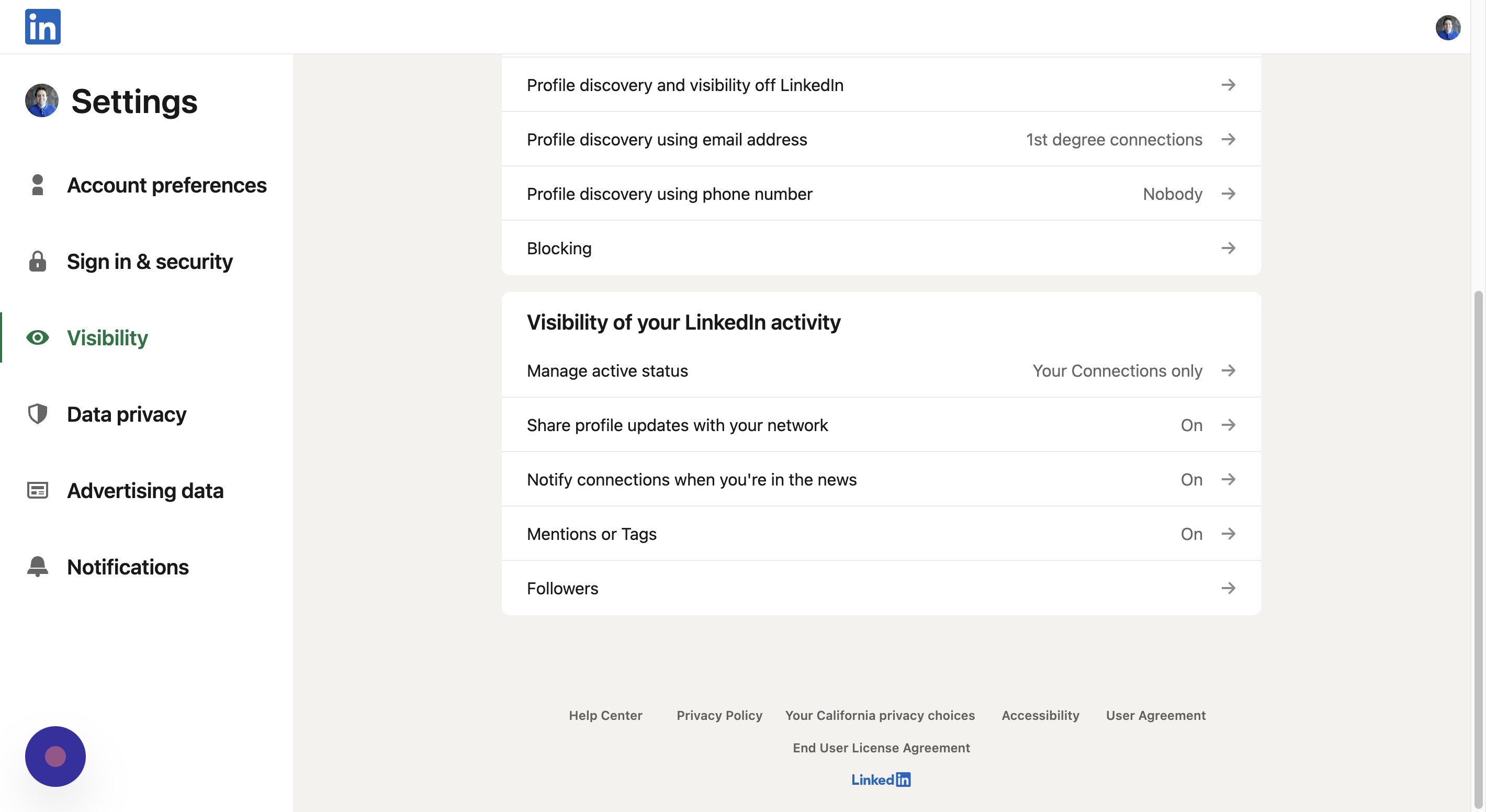 Back on the visibility page, click Profile discovery and visibility off LinkedIn