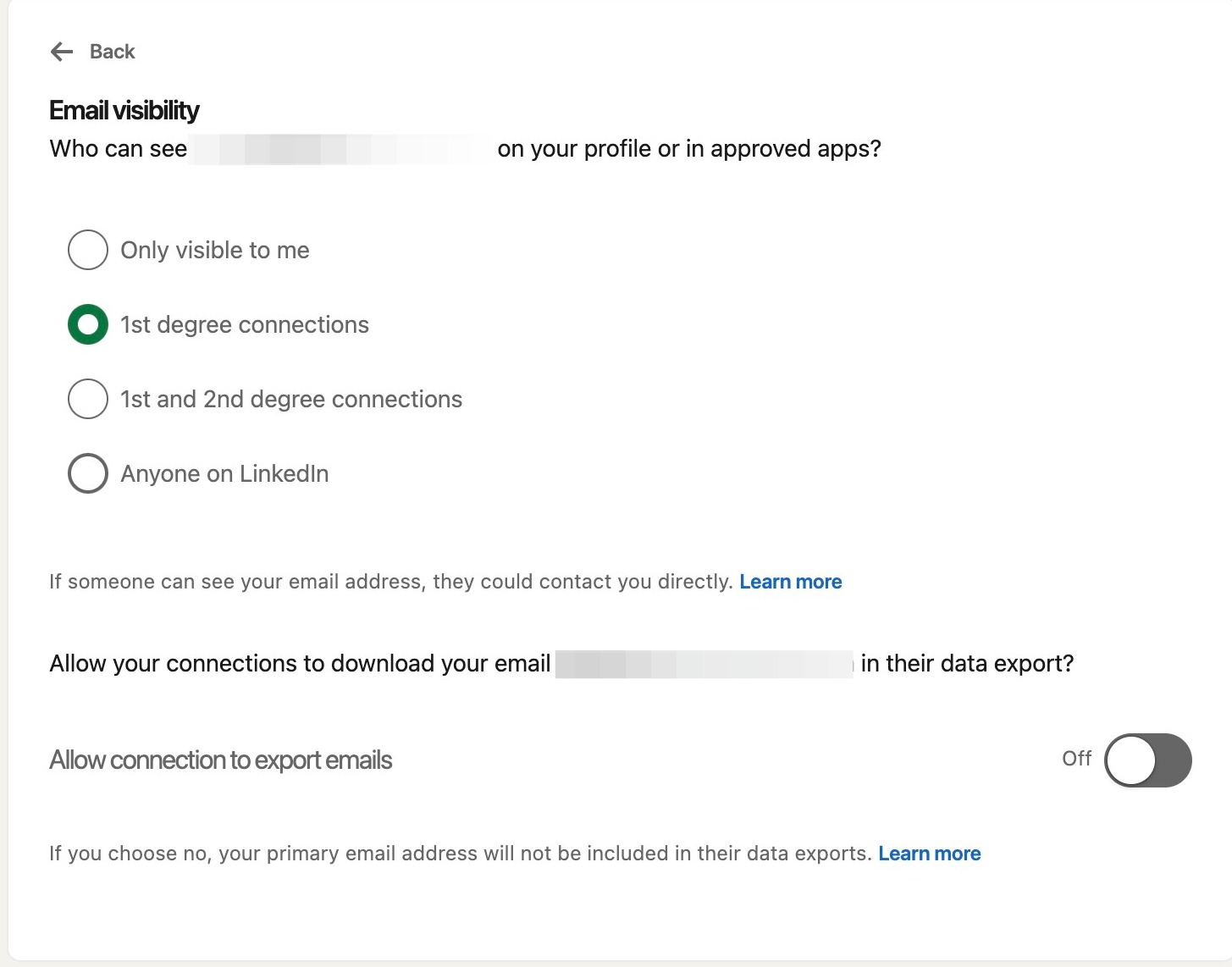Back on the visibility page, click who can see or download your email address