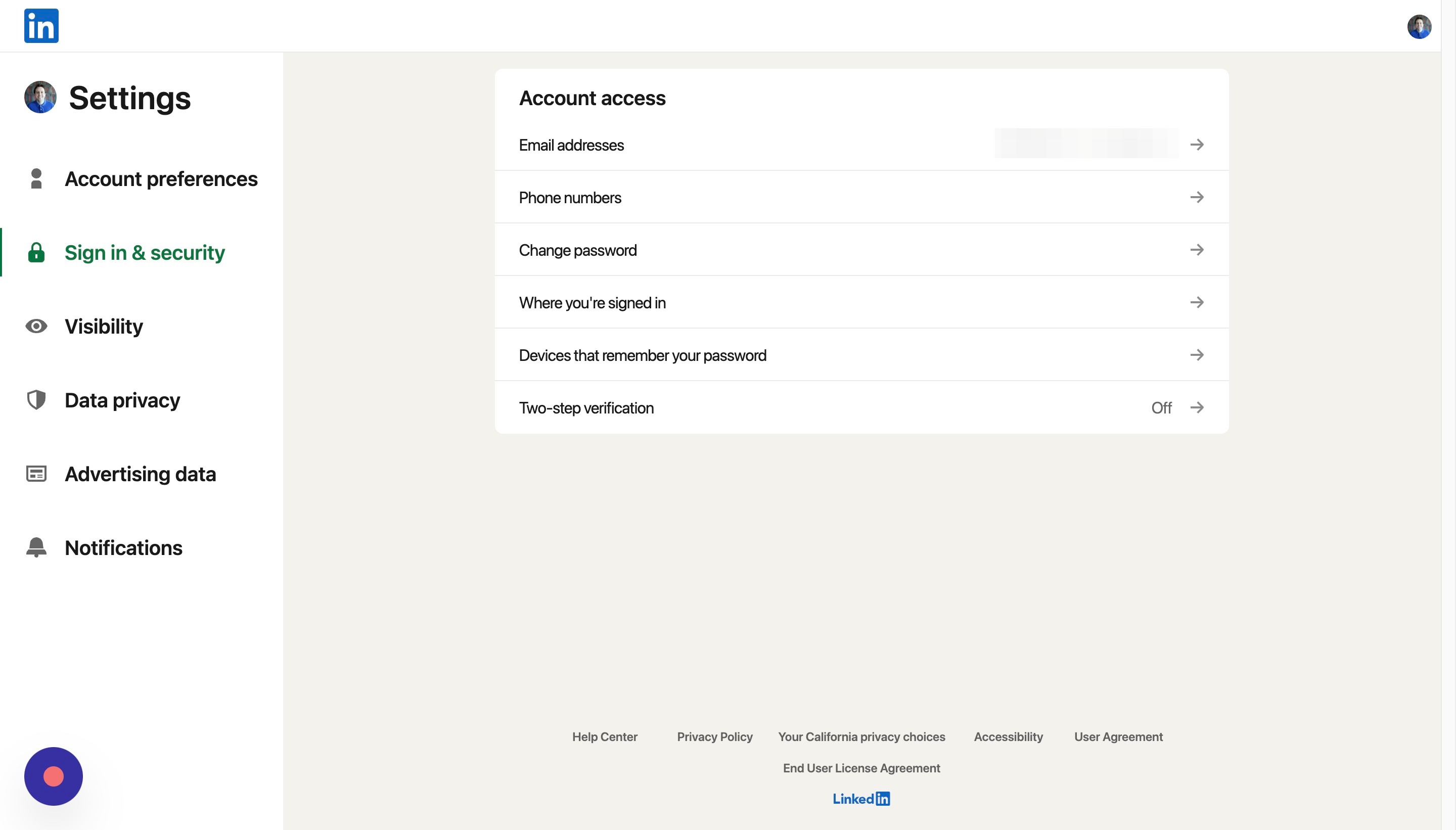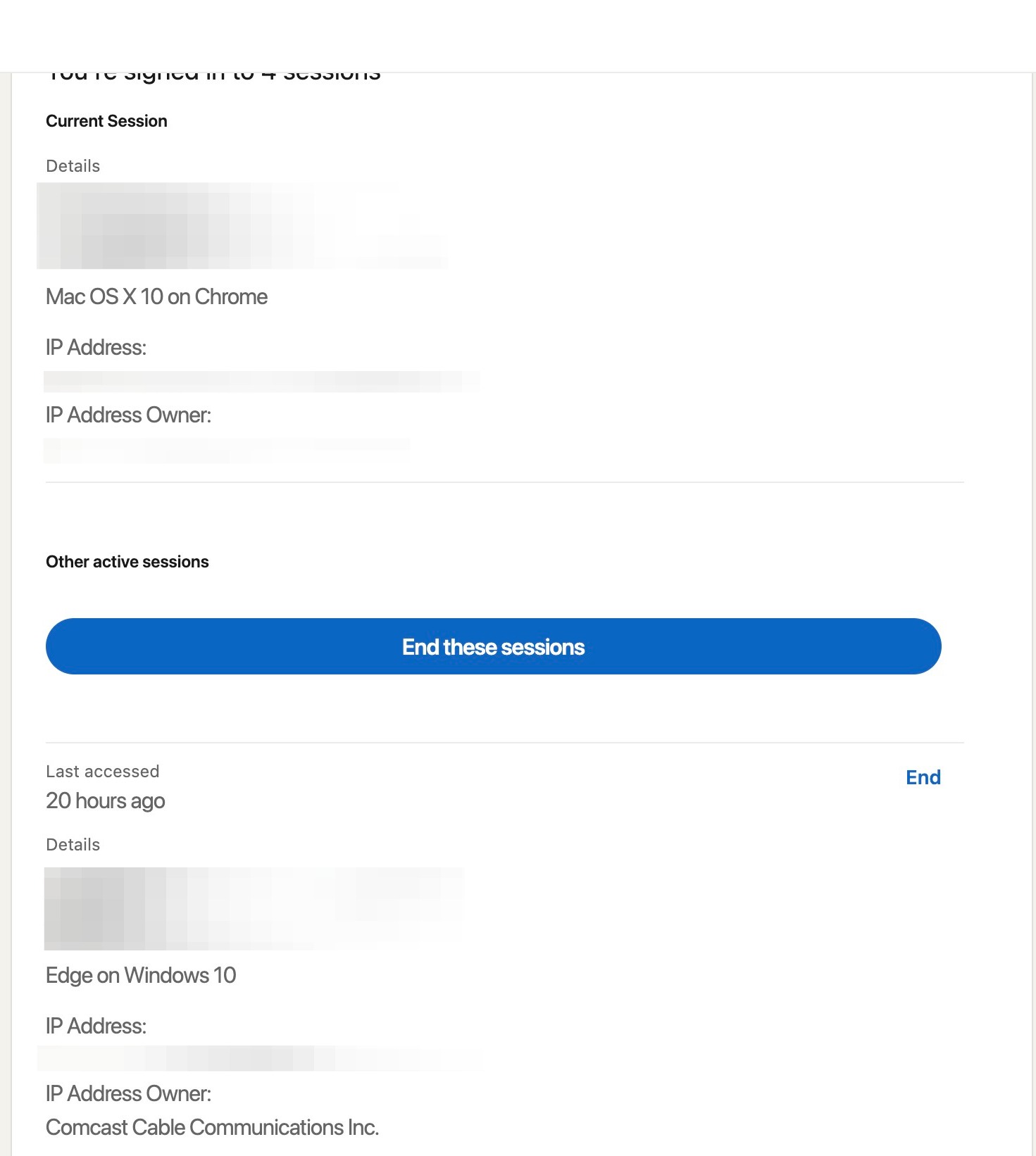 Here, you can see all of the locations where you've logged into your LinkedIn account. If any of these do not look familiar, click end these sessions