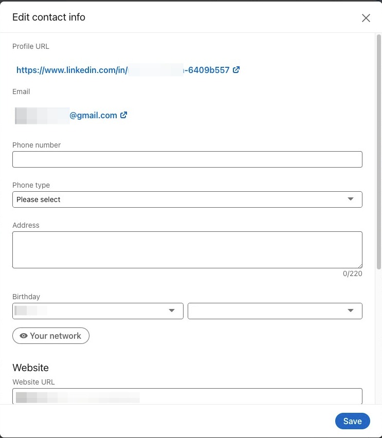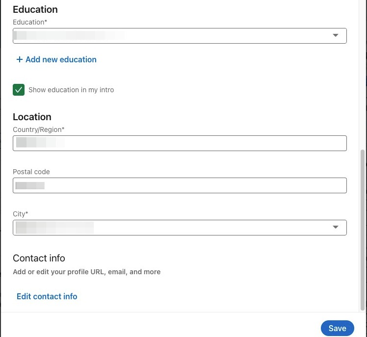 You can also edit your education and current location. Click save when you are done. Then, click edit contact info