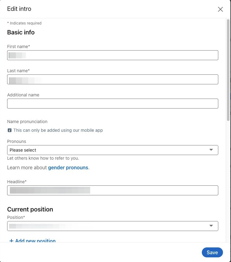 Here, you can edit the information that will appear on your profile, including your name, and current job