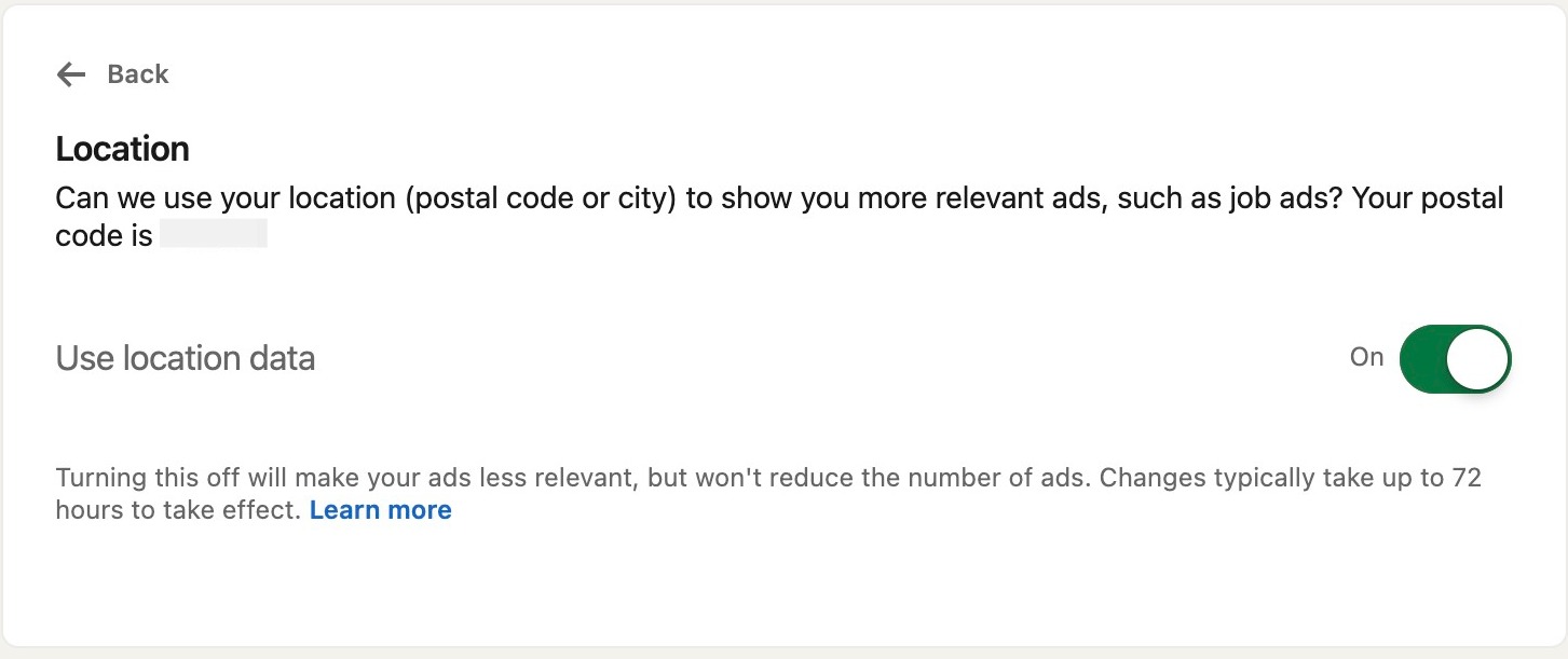 Click this button if you don't want LinkedIn to send you targeted ads based on your location