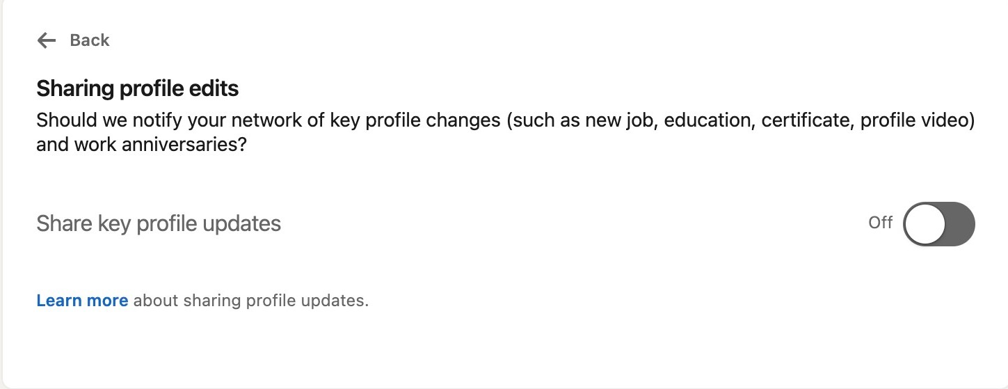 Here, you can choose whether any profile edits will be made public to other members in your network