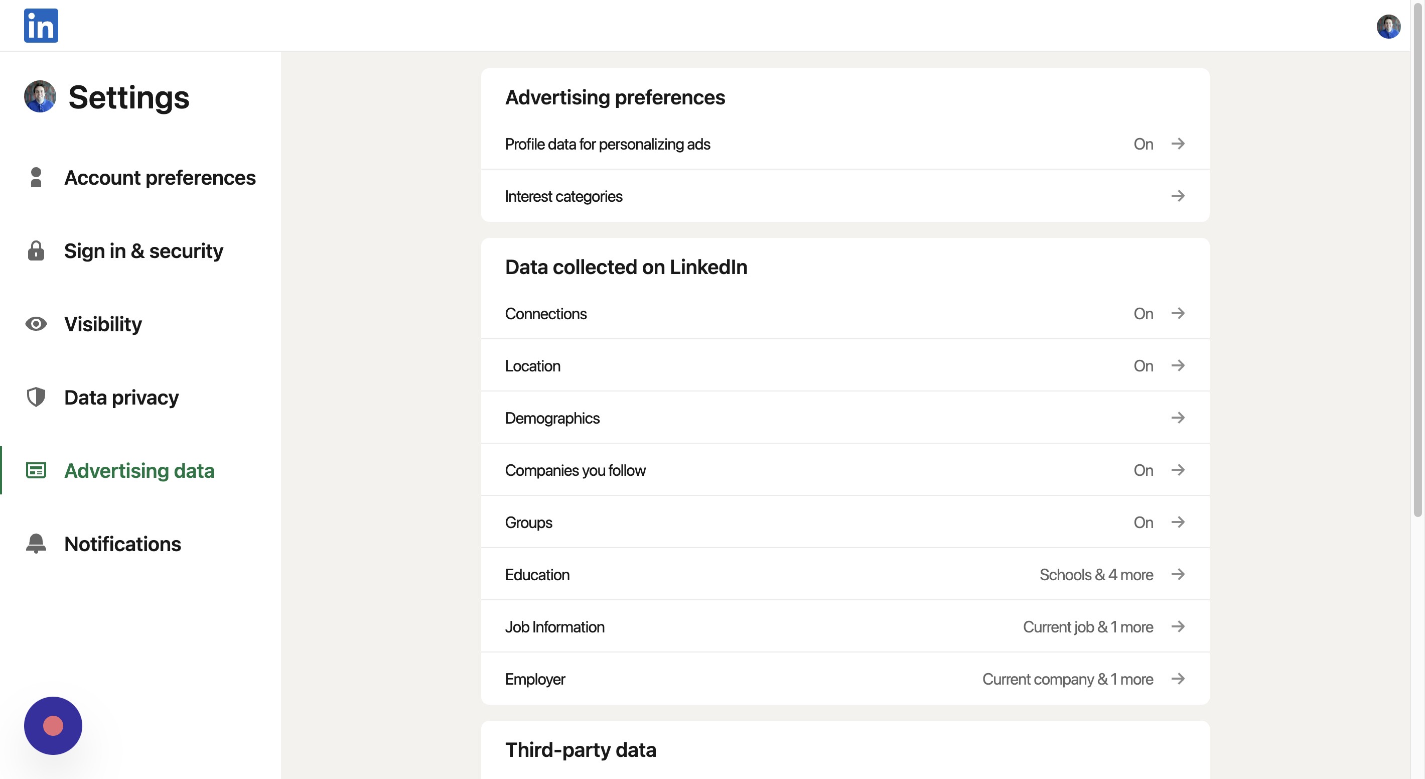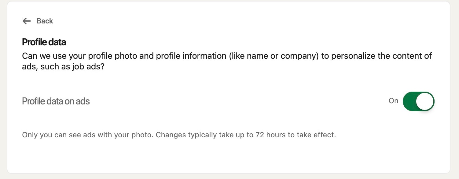 Click this button if you don't want LinkedIn to use your data to send targeted ads