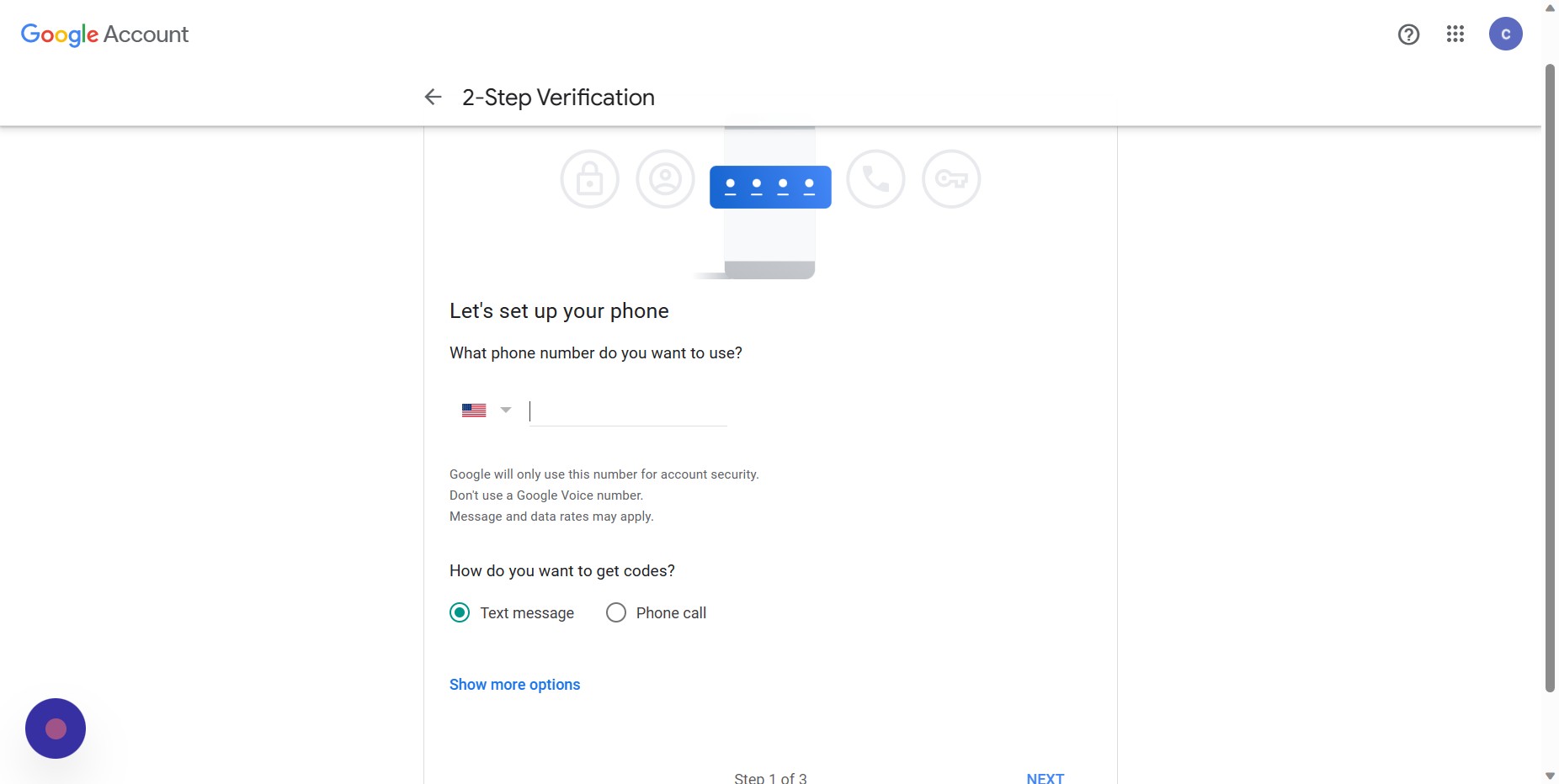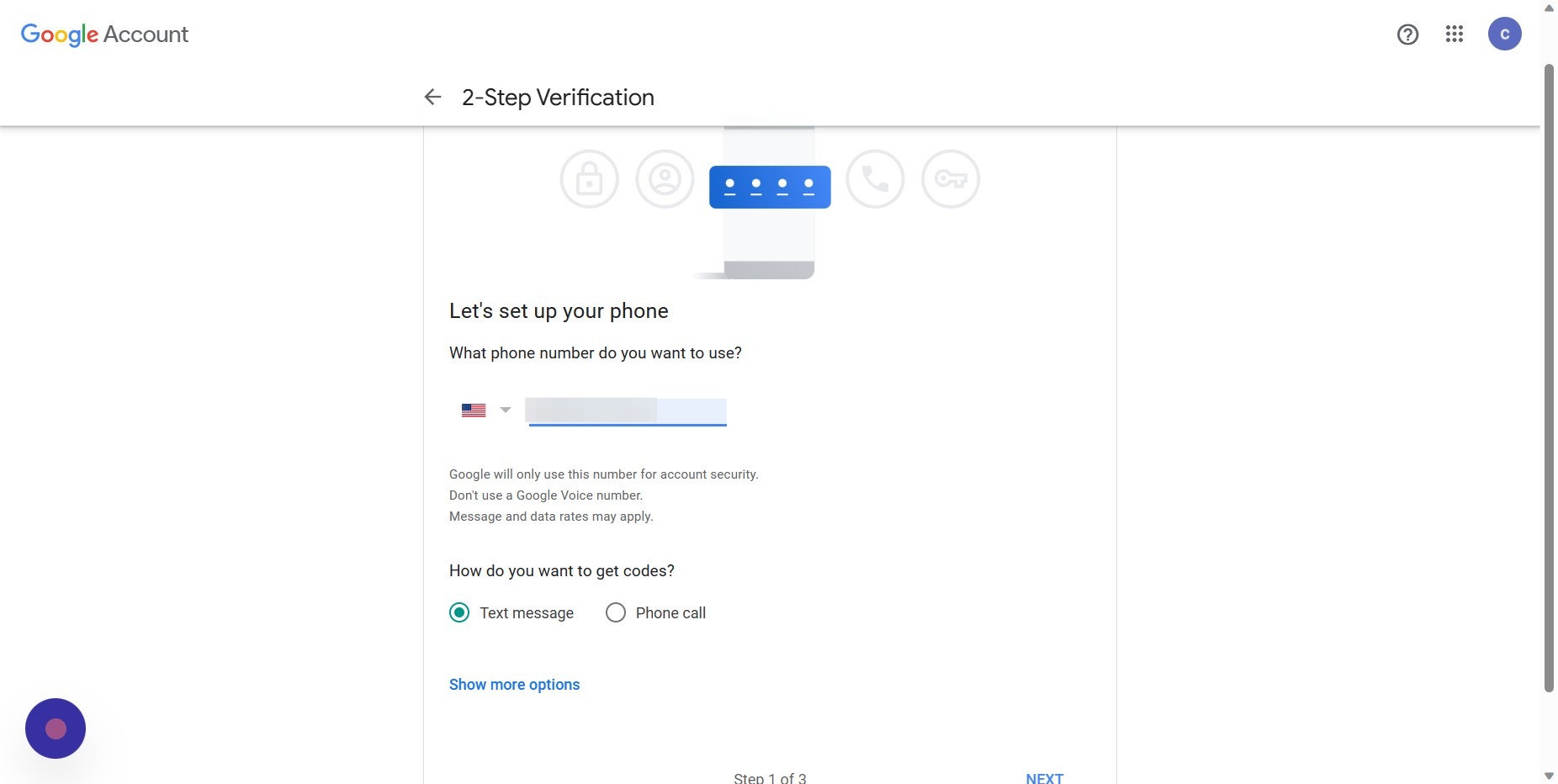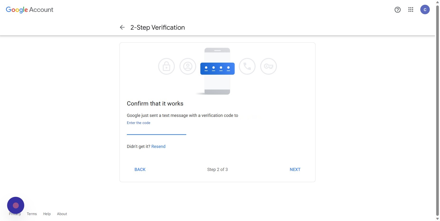 Enter the code you receive from the text message