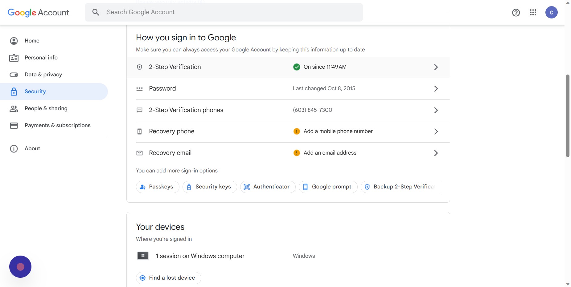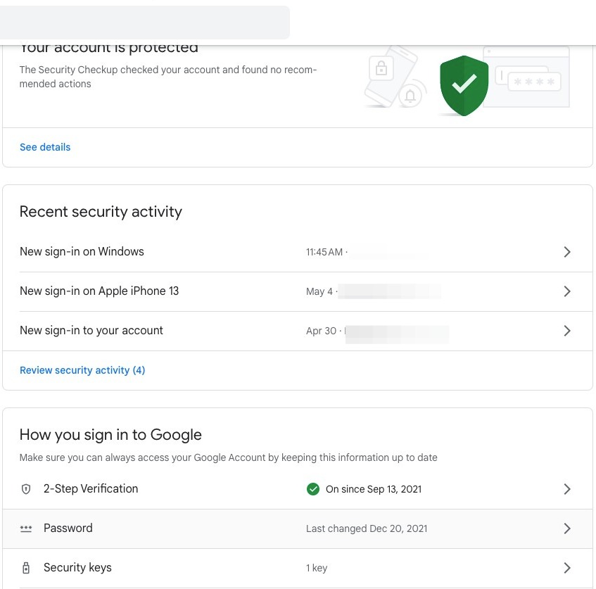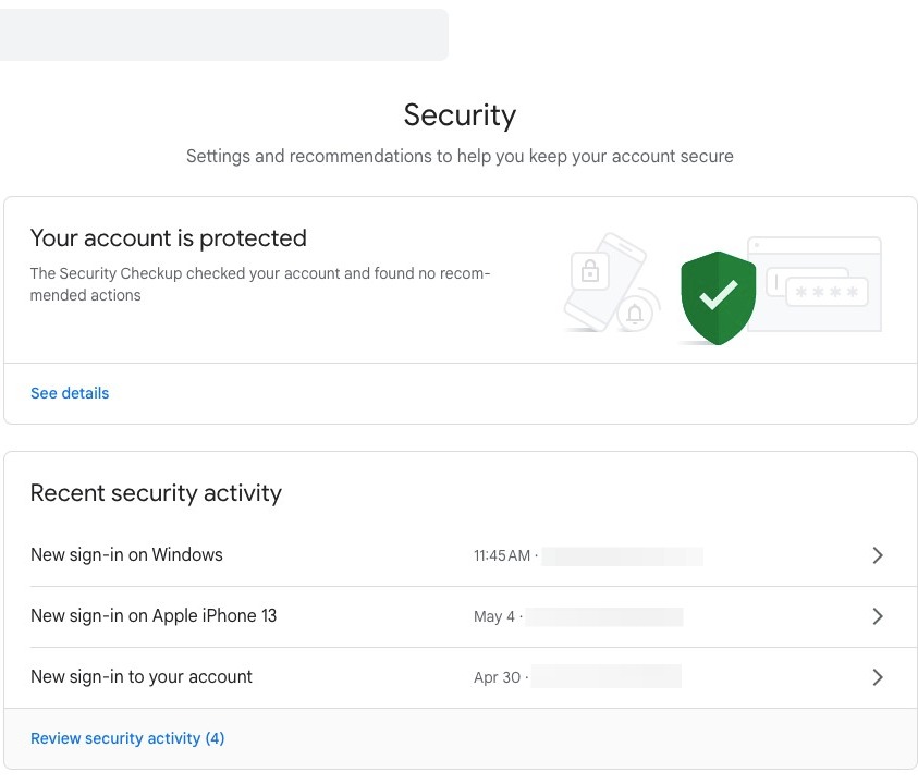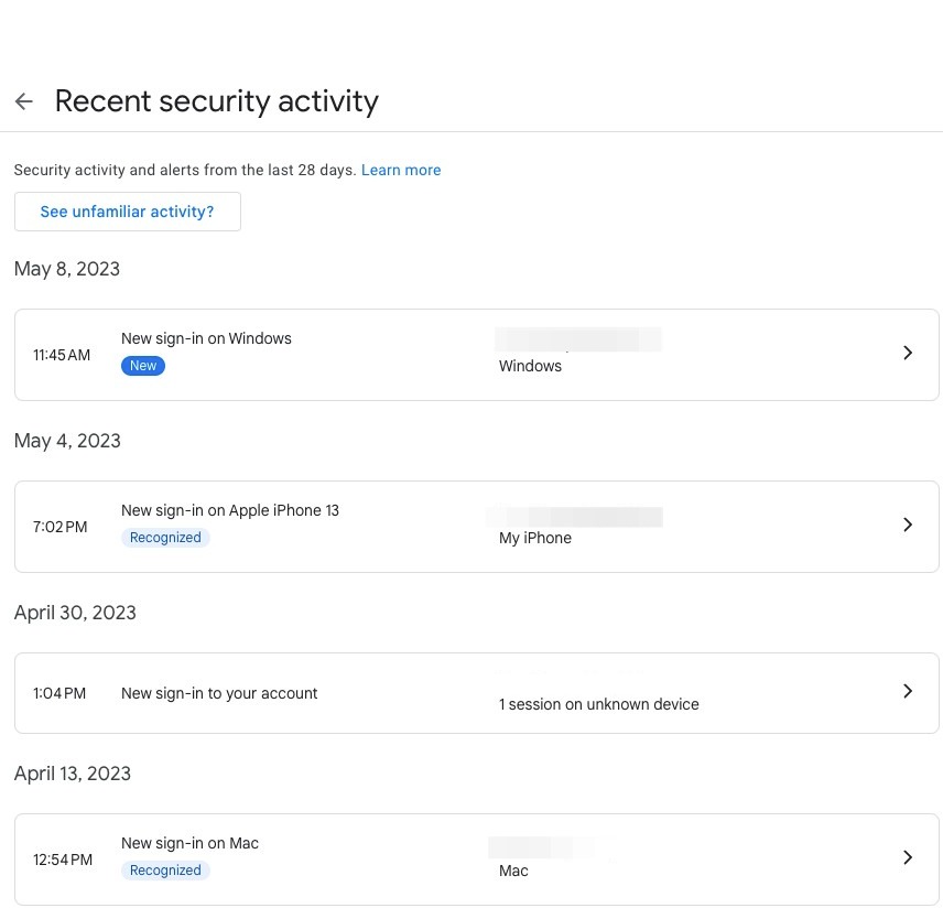 Here, you can see all of your recent logins. If you do not recognize a login, Google recommends changing your password as soon as possible