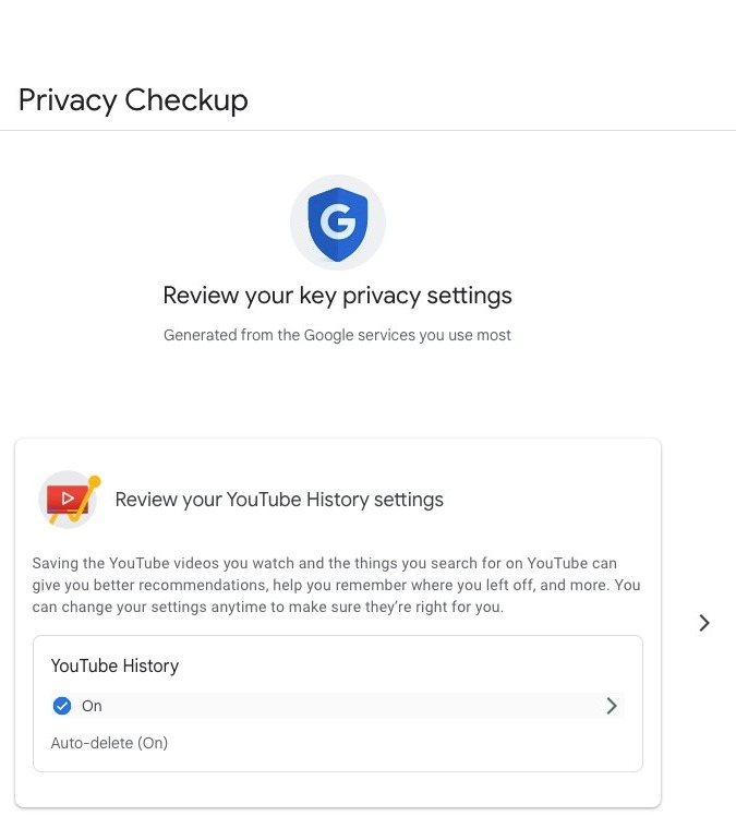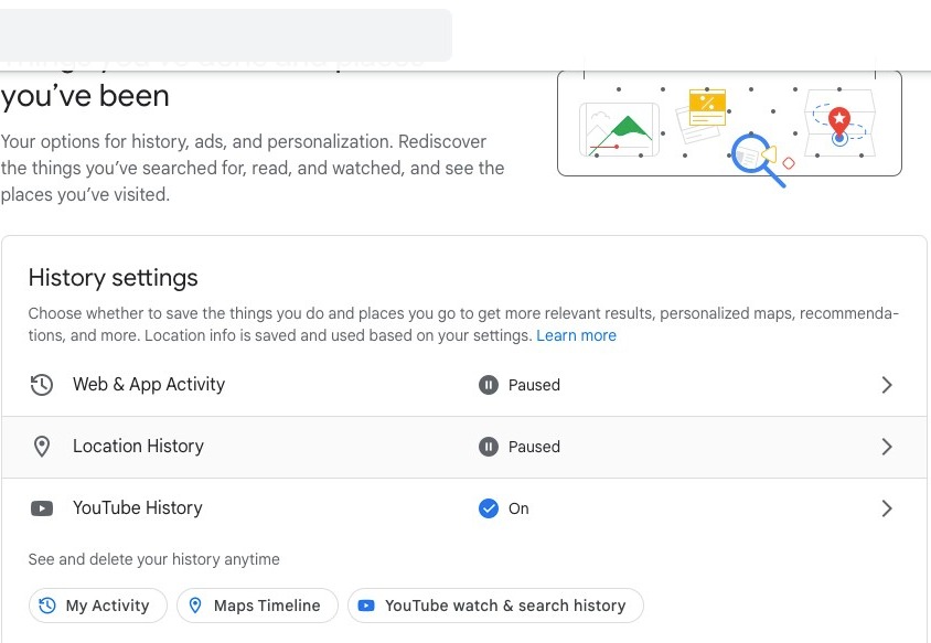 Next, you will be able to adjust your YouTube history settings. Click here