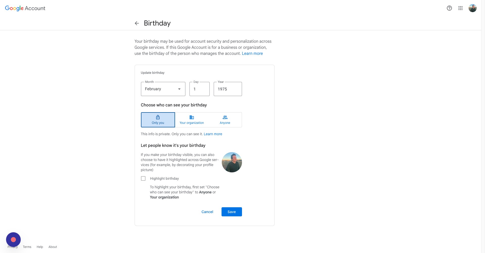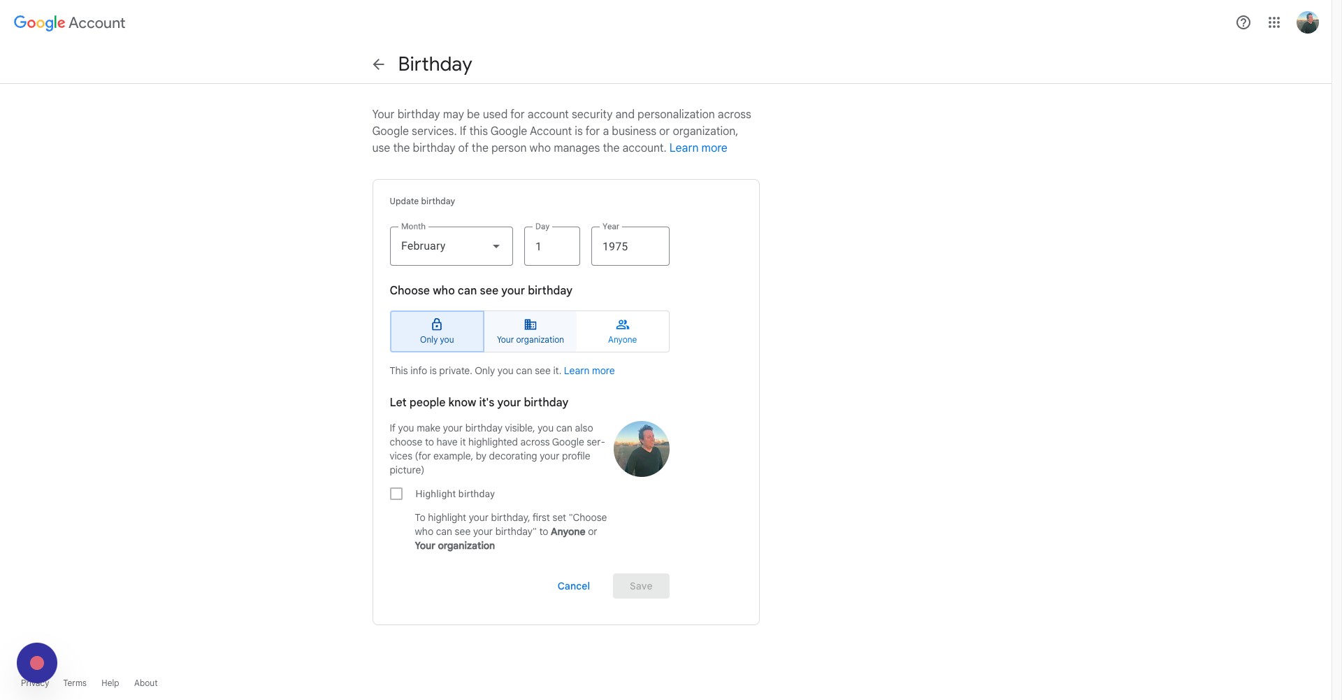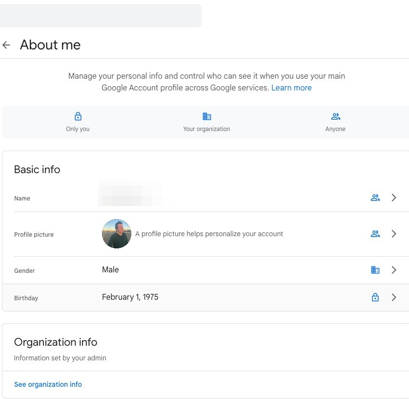 Here, you can choose whether everyone can see this piece of information, only people within your organization, or just yourself