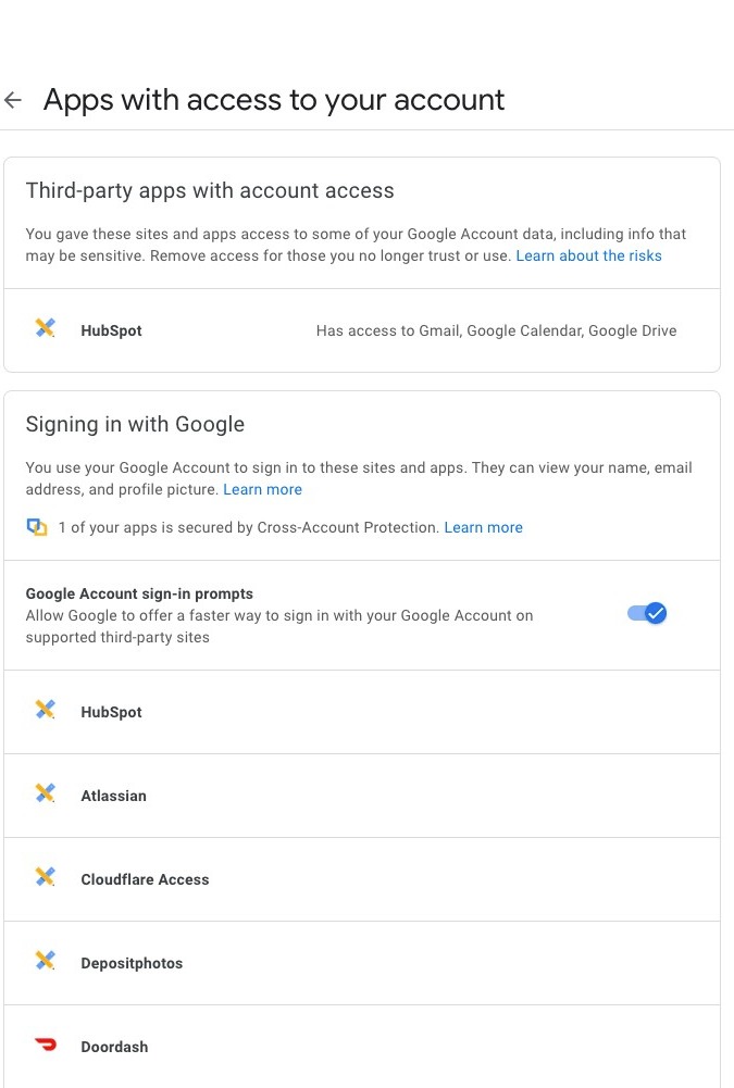 Here, you can see all the apps your Google Account is tied to