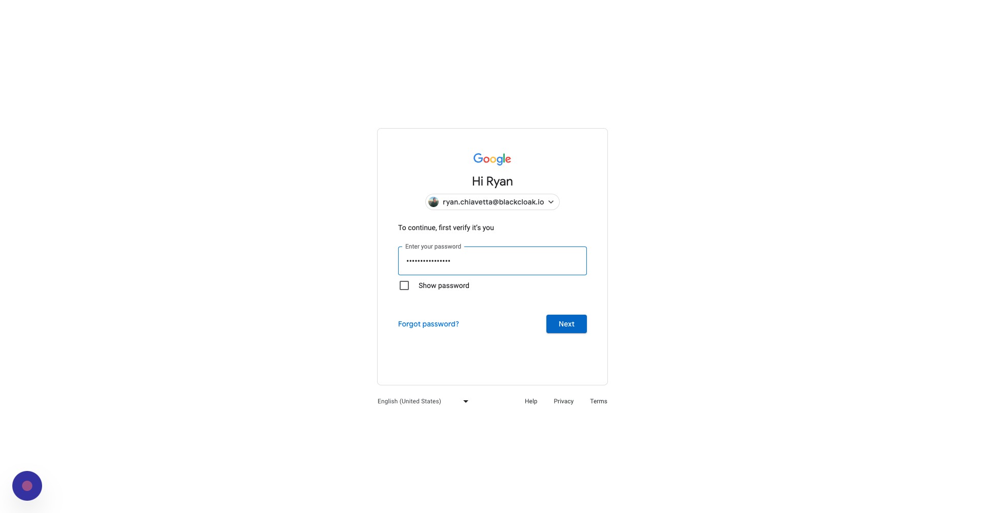 After you enter your password, click next