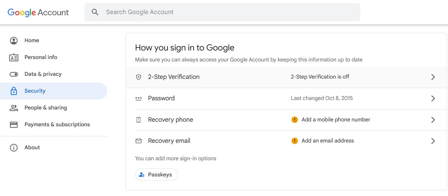 Go back to your Google Account