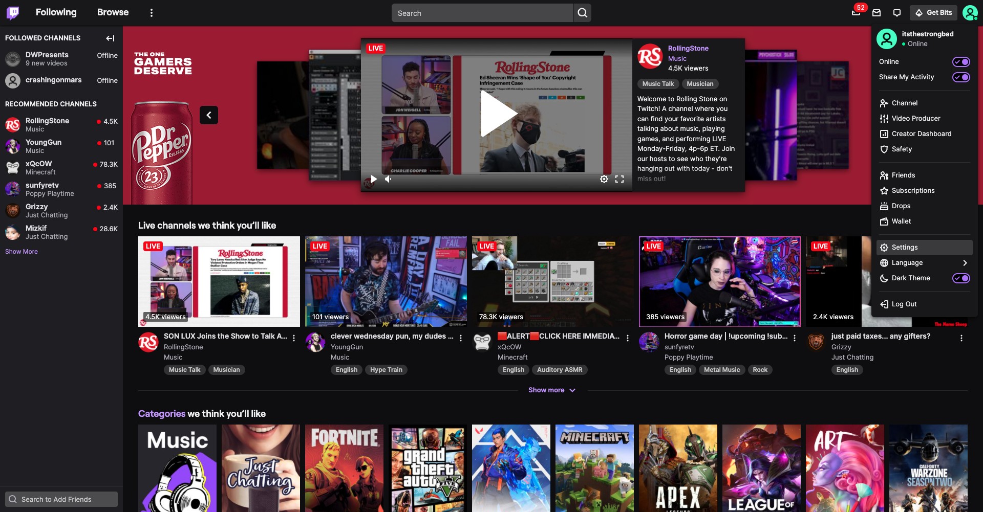 To deactivate Twitch on Mobile, first click on your profile icon on the left hand corner of the screen.