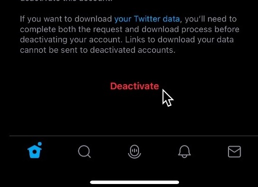Deactivate Twitter on mobile