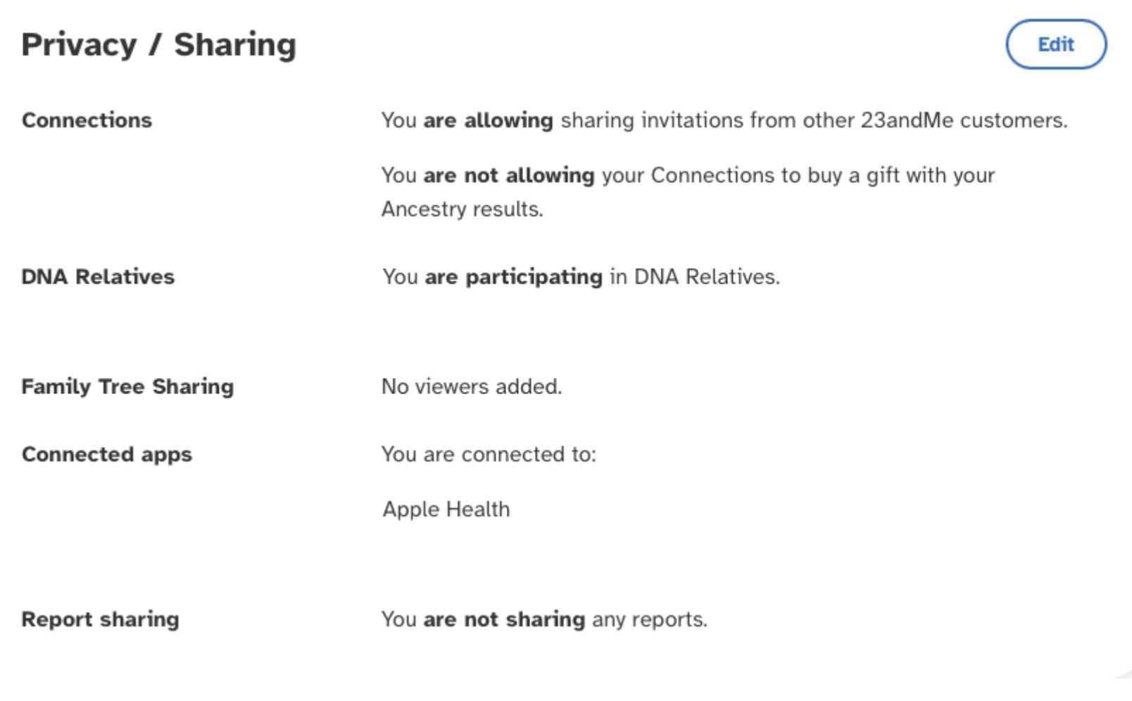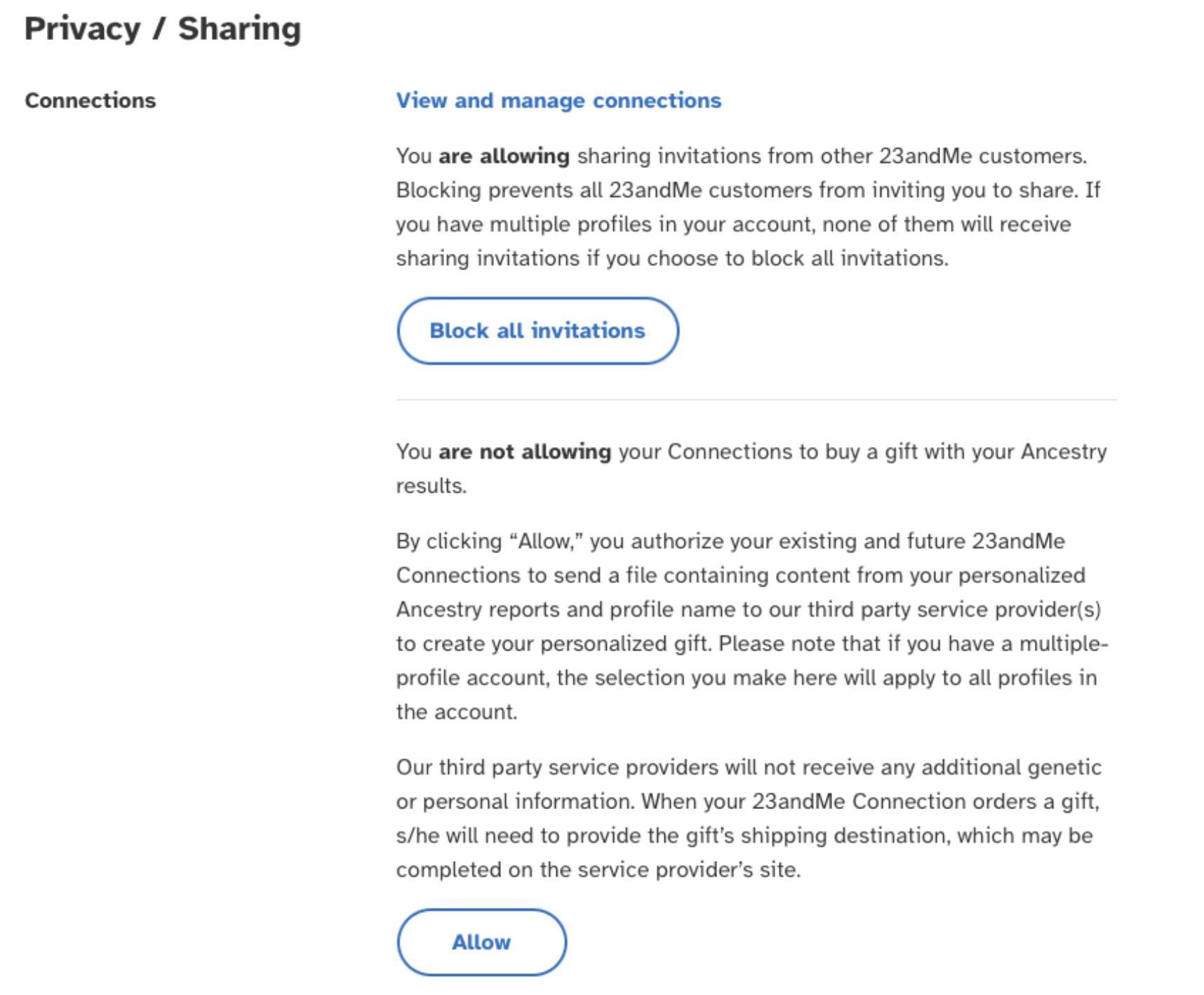 In this section, turn off/opt out of all features associated with sharing your data, including, but not limited to "Connections and DNA Relatives"