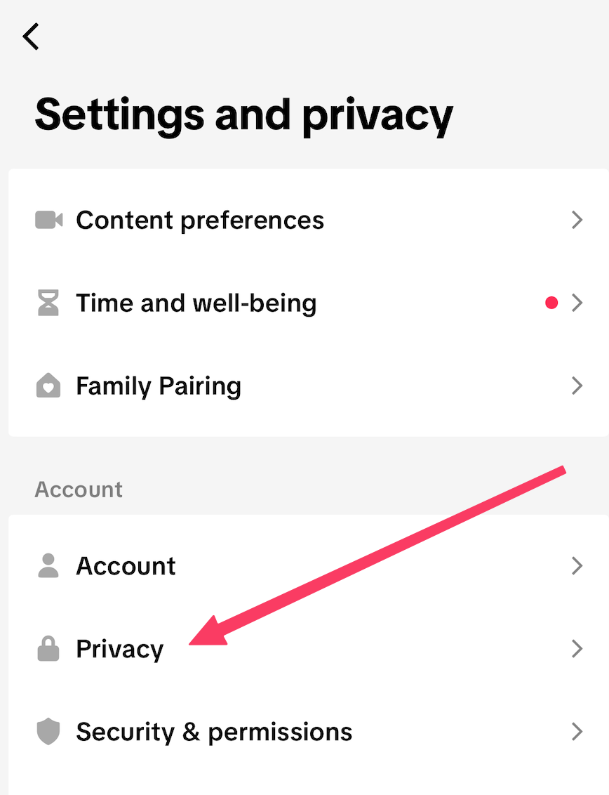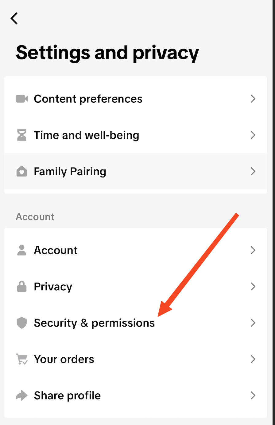Return to the primary Settings & Privacy menu. Select "Security & Permissions".