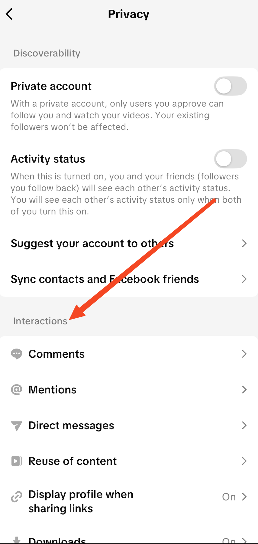 Return to the main "Privacy" menu. Scroll down to "Interactions":